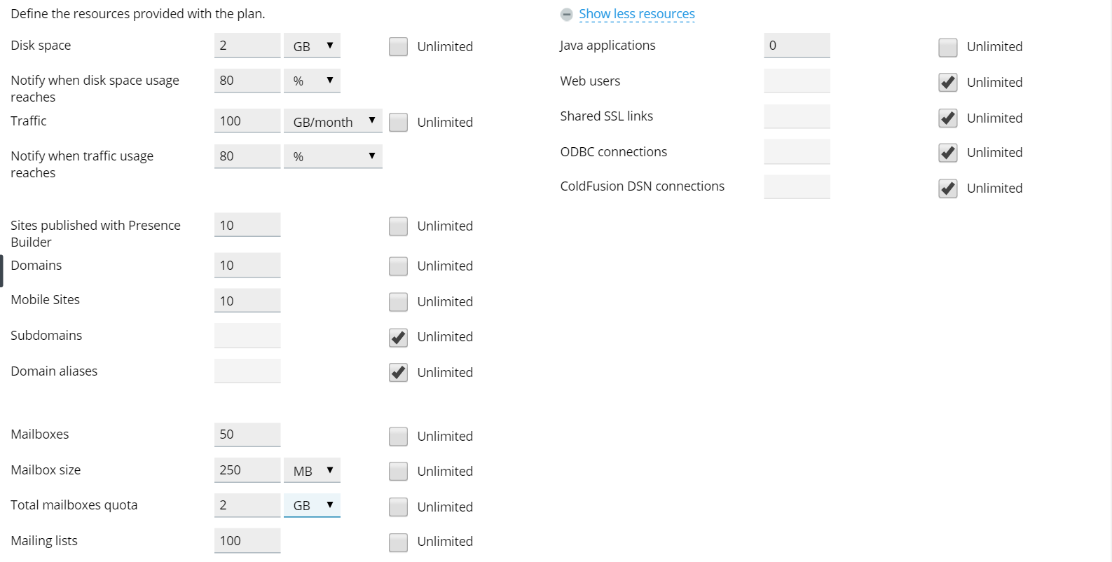 • Unlimited POP3 Email Accounts with SMTP (Rate limit of 350 Emails per domain per hour is applicable)
