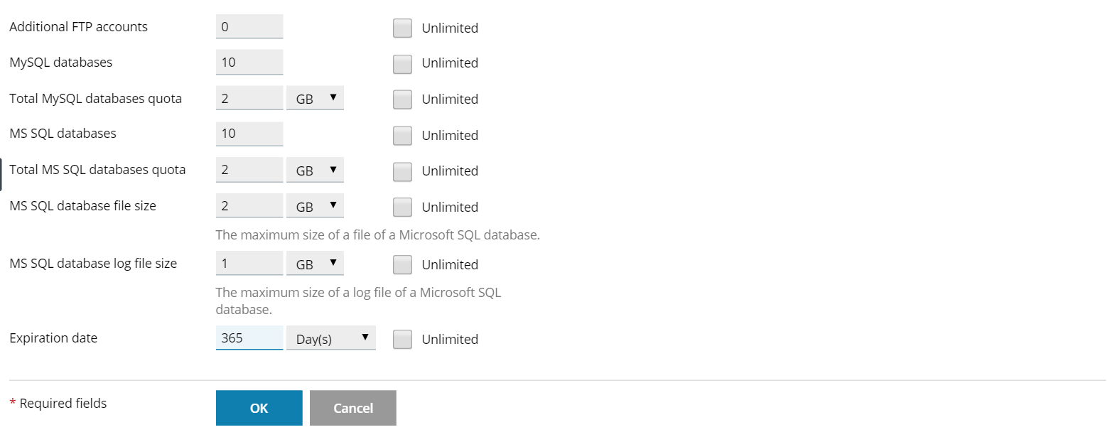• Unlimited Databases (maximum database size for a single database limited to 500 MB and cumulative total database size restricted to 5 GB)